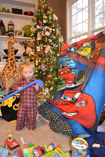 We started the morning with a yummy Christmas breakfast sent over from Grandmommy. Carter is still working on his manners. He doesn't understand why it isn't appropriate to put your feet on the table ;)