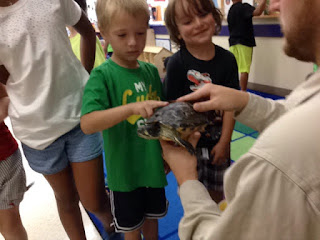 Parker loves summer camp and we can see why. He had fun weekly field trips like bowling, movies, Tiny Town and Roller Skating. Plus special visits like Karate, cooking, science club, reptiles and even Captain Jack Sparrow and Friday Splash Days. He was so proud of all the fun art he made, he lined it up on the stairs to show it off like a "real gallery". We love watching his enjoyment for learning!